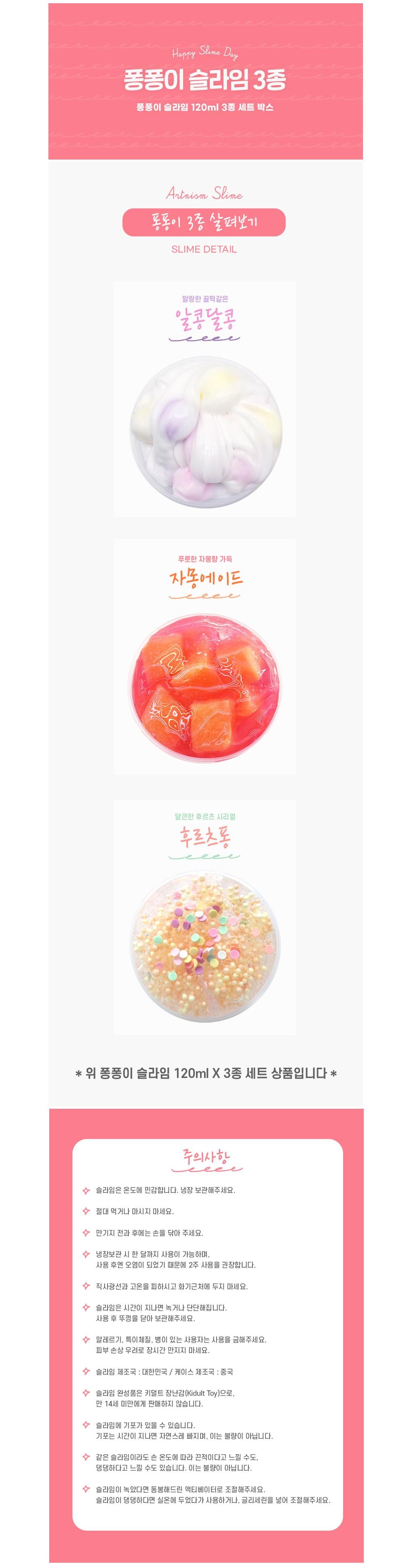아트니즘 수제 액체괴물 퐁퐁이 슬라임 3종 세트, 알콩달콩, 자몽에이드, 후르츠퐁