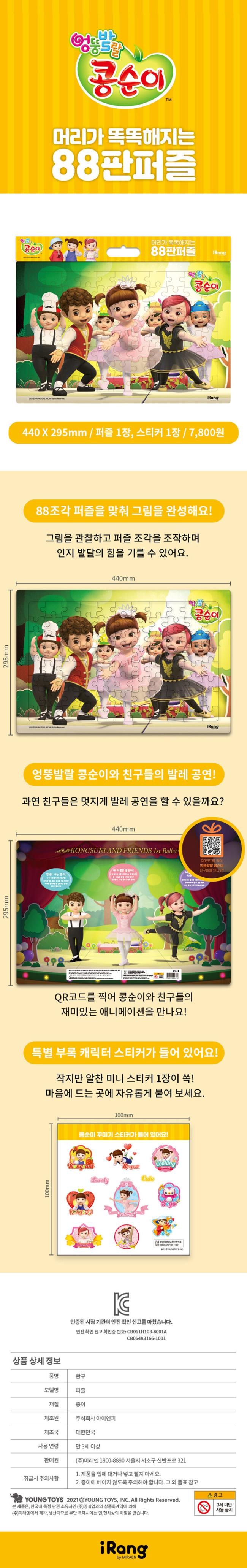 엉뚱발랄 콩순이 머리가 똑똑해지는 88 판퍼즐, iRang(미래엔 아이랑), 영실업