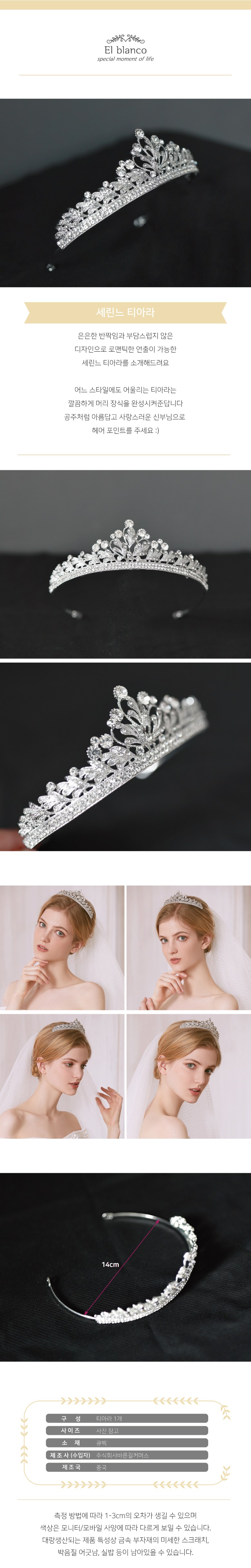 엘블랑꼬 셀프웨딩 티아라 큐빅 왕관 브라이덜샤워 촬영소품 세린느