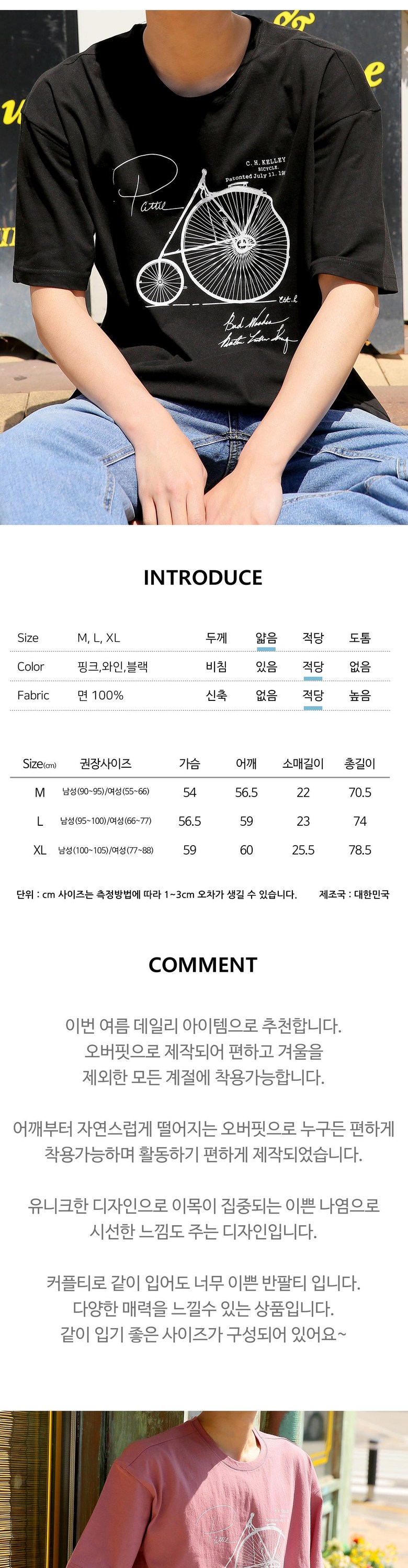 엠제이스타 5부티 오버핏 반팔티 모던자전거 남성 남자 여성 여자 반팔 티셔츠 26수 남녀공용 티셔츠 라운드 여름 면티 큰옷 레터링 프린트 나염 그래픽