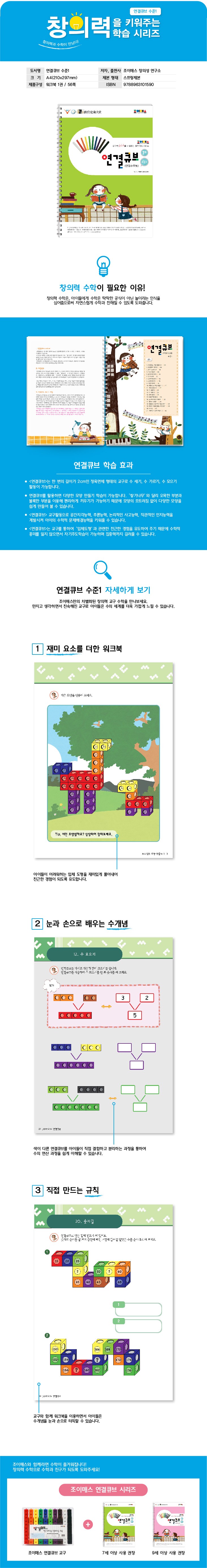 목차 또는 책소개(아동용 학습 교재의 경우 사용연령을 포함) 수 세기,수연산,규칙,패턴에 효과절을 뿐만 아니라,다양한 입체 모양을 만들어 봄으로써 창의력 향상에 도움을 줍니다.