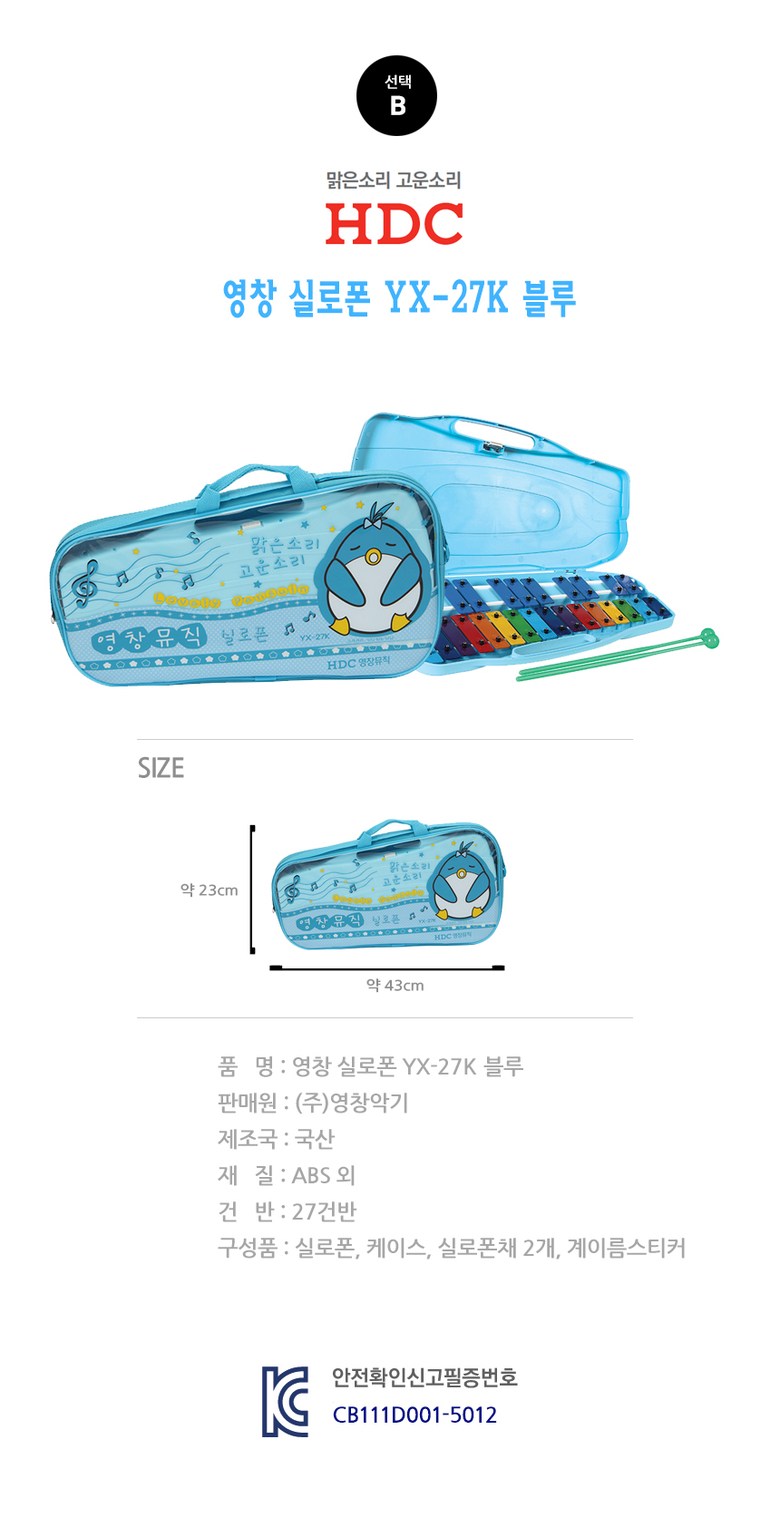 HDC영창 27k 레인보우 실로폰 YX-27KB, 노랑