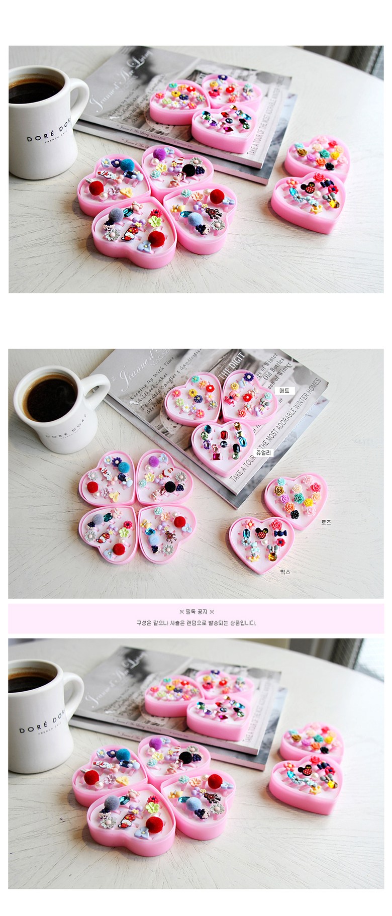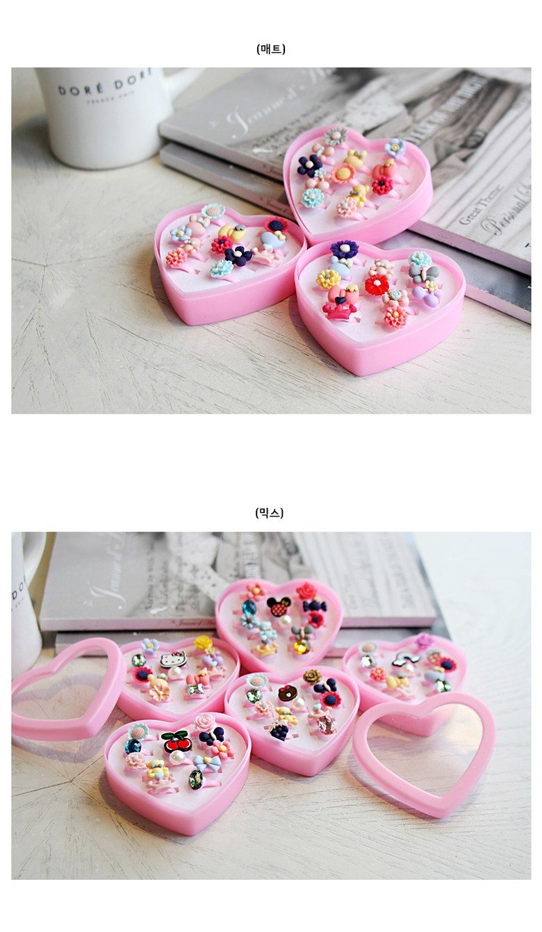 옐로쉬핑크 유아 여아 선물용 하트케이스 12p 반지 세트