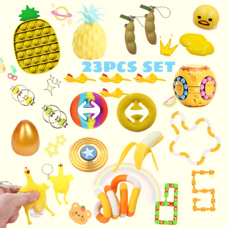 옐로우 스트레스 해소 장난감 23pcs 세트 스피너 보드게임 푸쉬팝 피젯토이 수납가방 증정