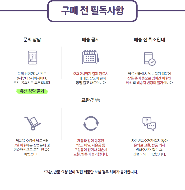 | 소비자상담 관련 전화번호 | 상품 상세페이지 참조 |
