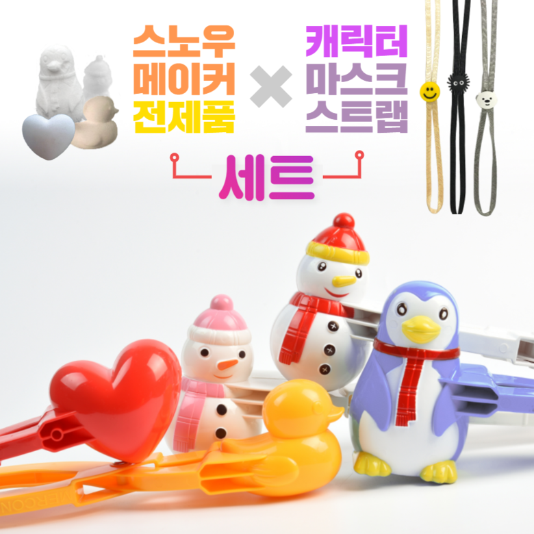 오리 눈사람 펭귄 하트 눈사람 동그리 눈뭉치 제조기 눈뭉치집게 스노우볼 메이커 만들기 세트 5종