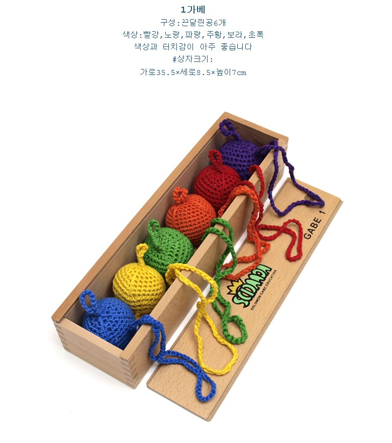 요기팜 1가베 놀이 교구 수업 끈달린공 6개 상자포함 엄마표 홈스쿨링 유치원 어린이집