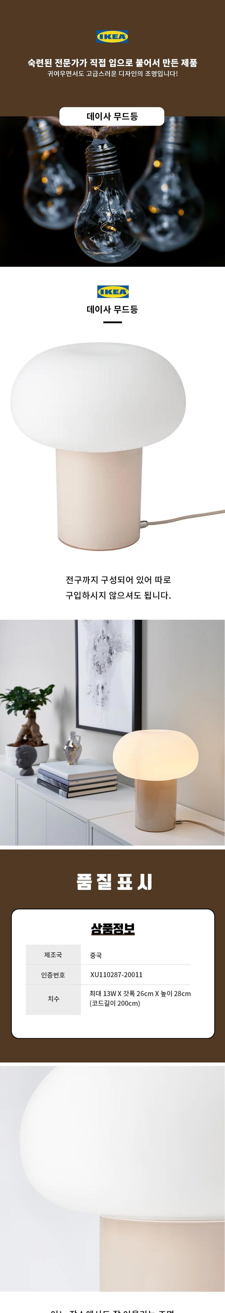 이케아 데이사 무드등 E26 전구 세트 스탠드 조명 인테리어 장식
