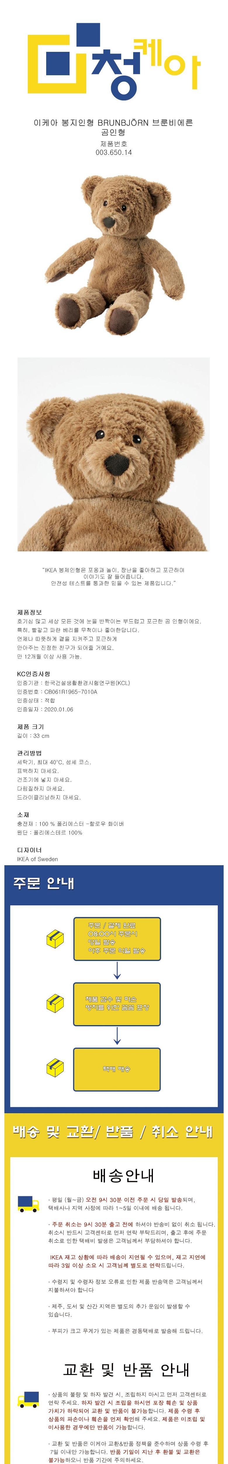 이케아 브룬비에른 봉제인형 곰 33cm 003.650.14