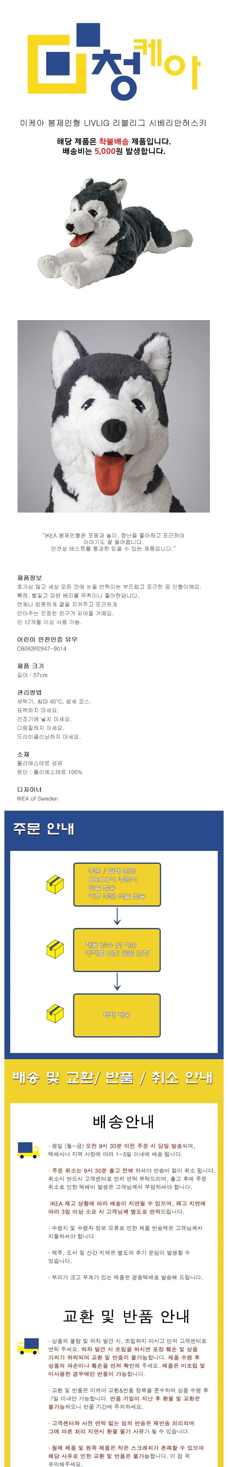 이케아 LIVLIG 봉제인형 강아지 시베리안허스키 57CM 30297995