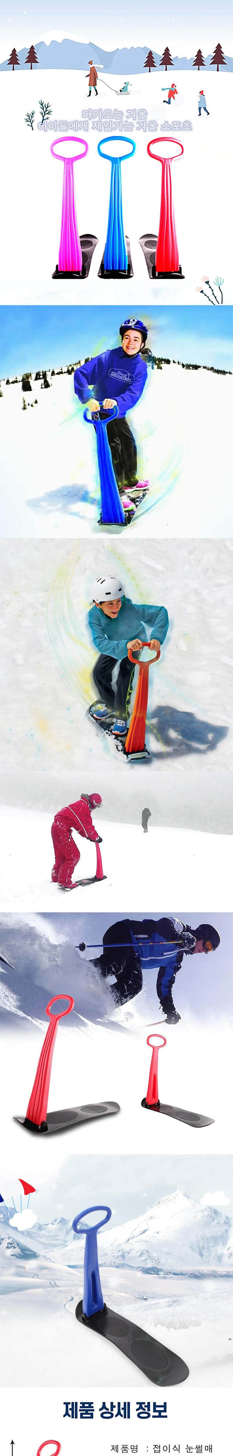 [인성]2022년 서서타는 썰매 스탠딩 스키 스노우 킥보드 휴대용 접이식 눈썰매, 핑크