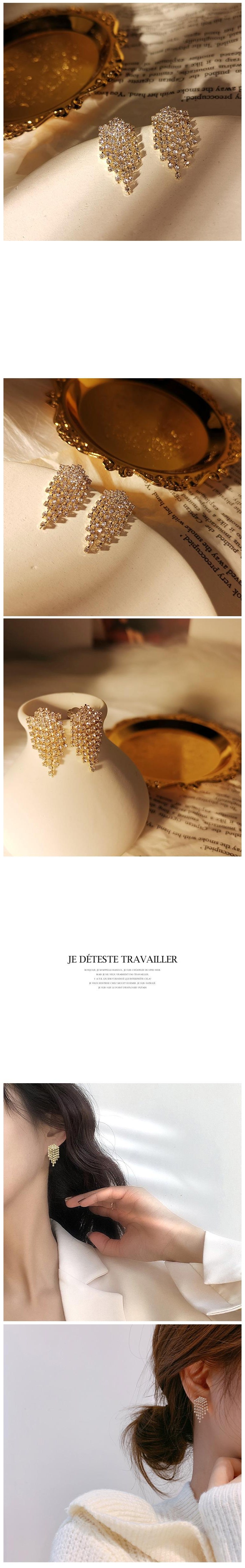 일호장신구 그물 큐빅 찰랑 귀걸이 [은침] 개별카드텍포장 귀걸이클러치증정 국내배송