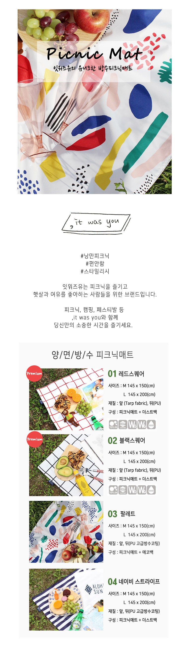 잇워즈유 양면방수 피크닉매트, 블랙스퀘어