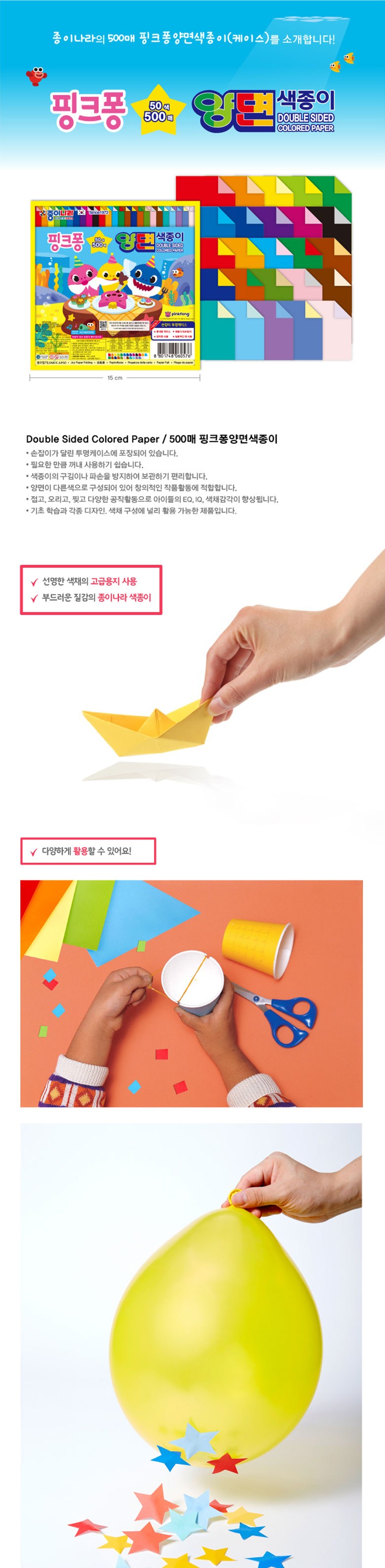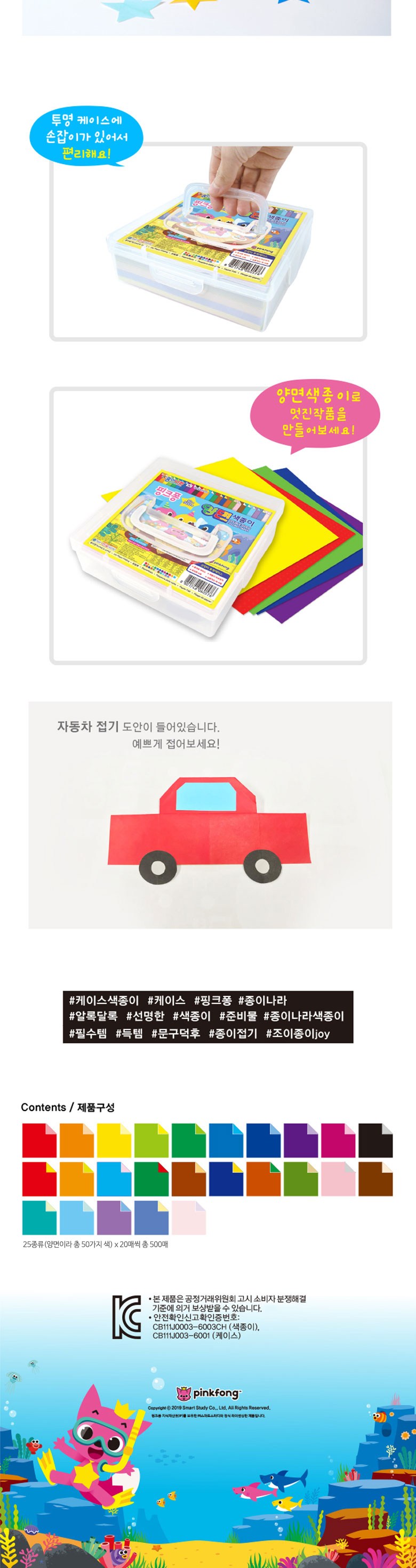 종이나라 핑크퐁 손잡이케이스 양면색종이 500매, 50색, 1개