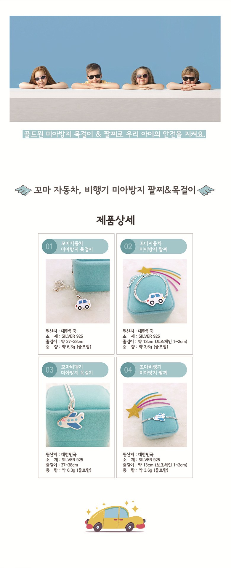 (주)골드원 꼬마자동차 꼬마비행기 은 미아방지 목걸이 팔찌 세트 (무료각인 포장), 꼬마자동차 목걸이 팔찌 세트, 1개