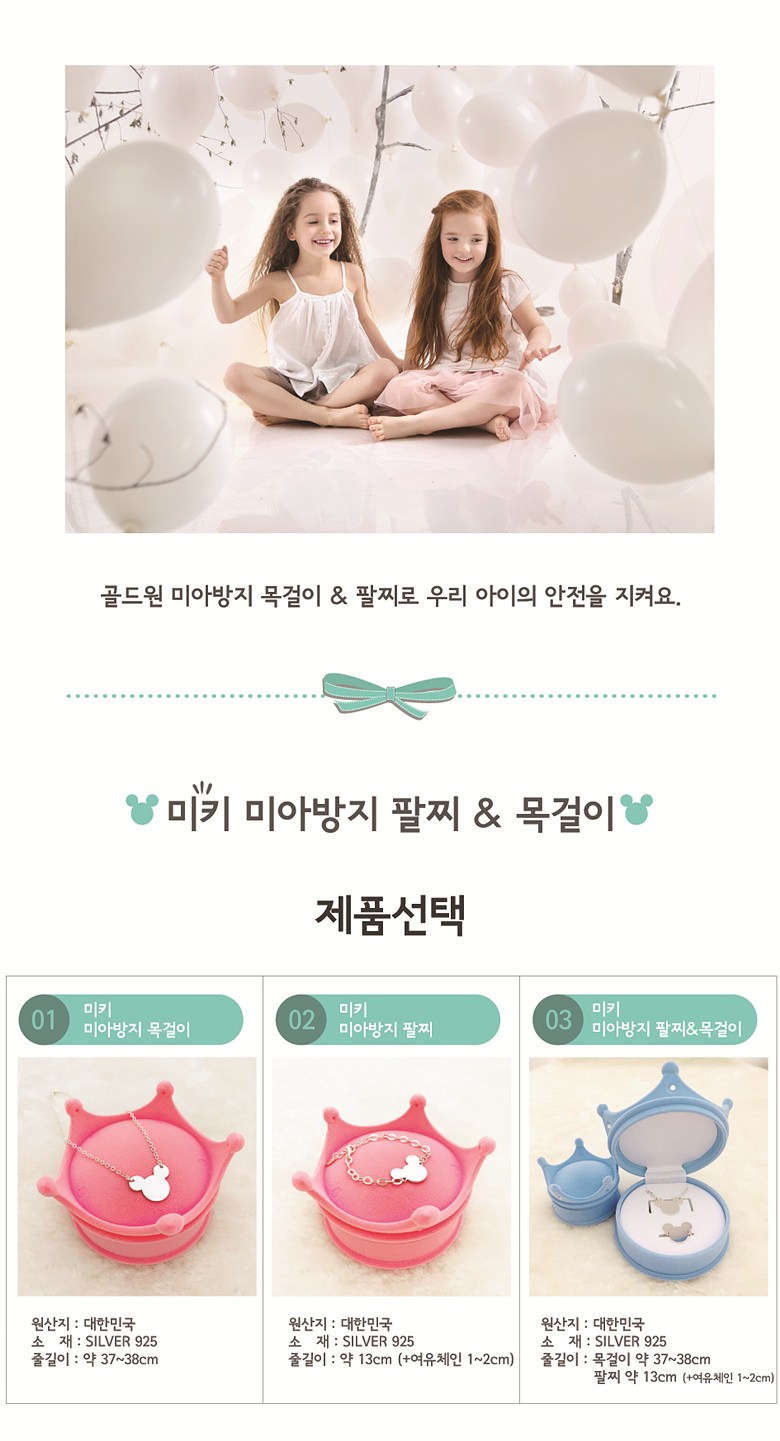 (주)골드원 미키 체인 미아방지 은 목걸이 팔찌 세트 (무료양면각인 포장서비스)