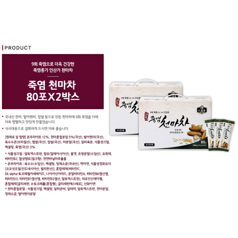| 원재료명 및 함량 | 상세페이지 및 박스 별도 표기 |