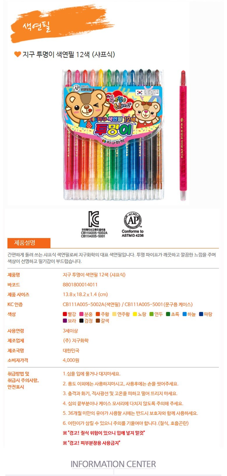 지구화학 투명이 샤프식 색연필 3p, 12색