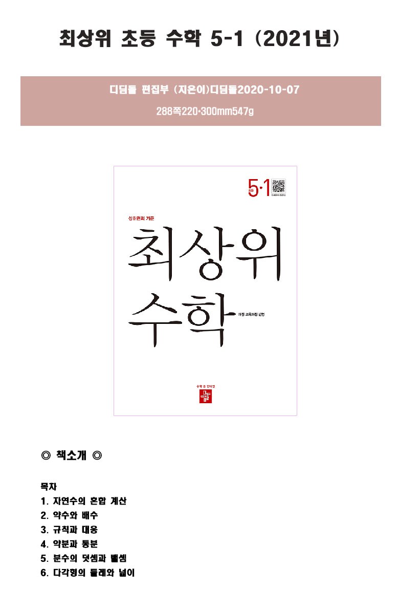 | 도서명 | [디딤돌] 최상위 초등수학 5-1 (2021년) |