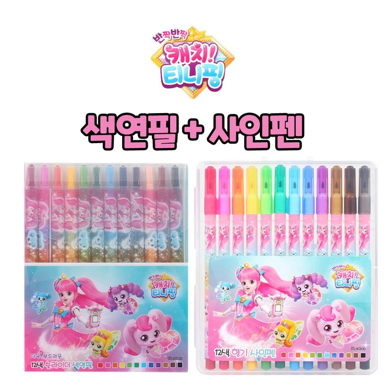 캐치티니핑 색연필12색+사인펜12색세트 연필1증정, [SET]캐치티니핑 색연필12색+사인펜12색