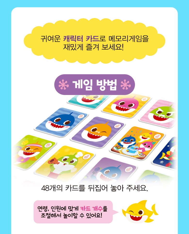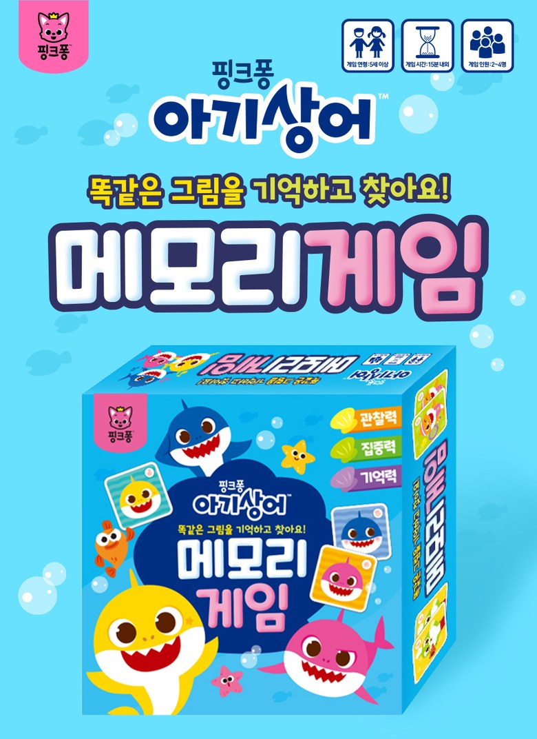 콩꼬물마켓 핑크퐁 메모리게임 기억력 집중력 카드 두뇌 보드 게임, 혼합색상
