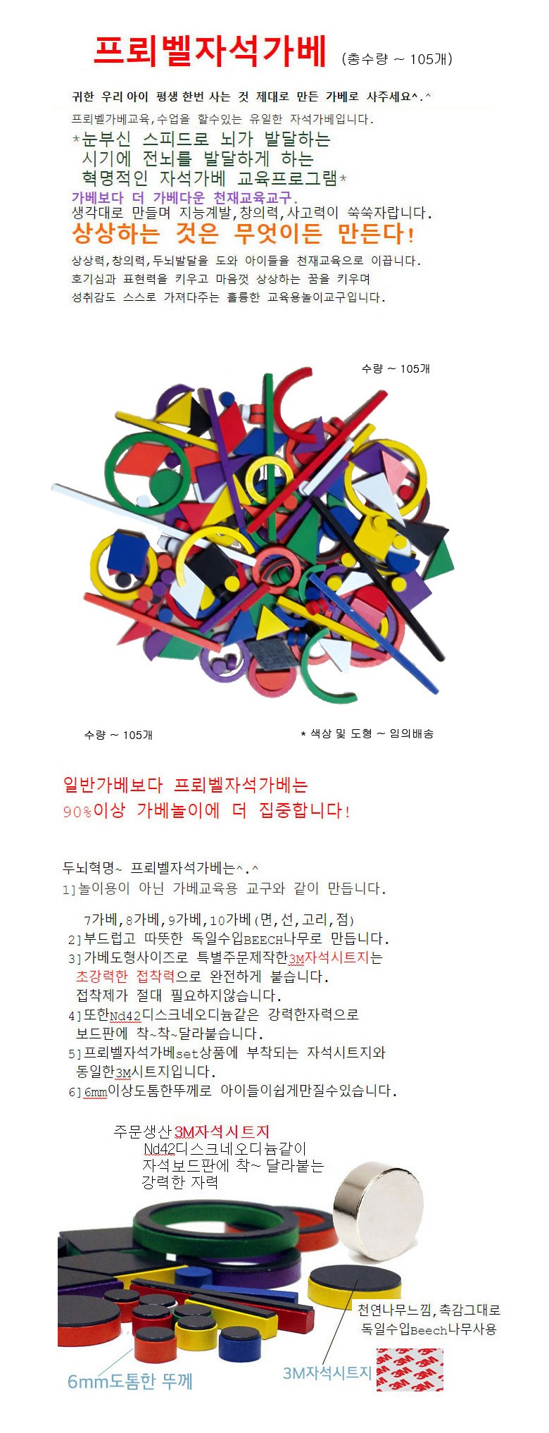 킨더바움 프뢰벨자석가베리필105개 리필원목 퍼즐자석 원목블럭 가베교구 자석원목 자석블럭 자석가베리필 원목블록 원목리필 원목자석 도형자석 블록자석 자석블록 자석교구 원목교구, 105개 임의