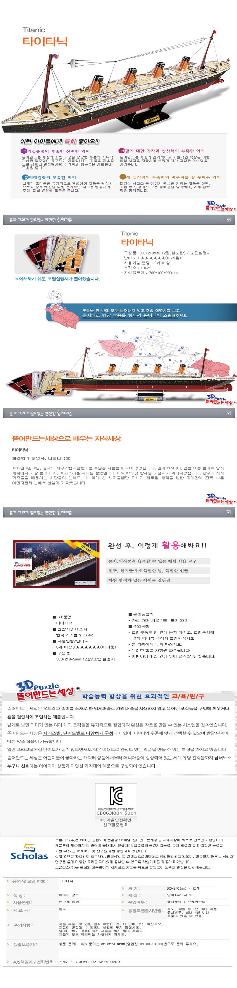 타이타닉 입체퍼즐, 186피스, 혼합색상