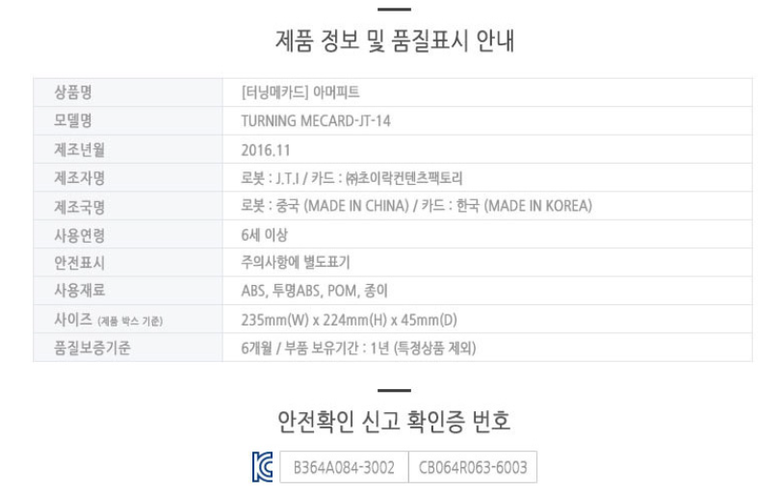 | 인증/허가 사항 | 상품 상세페이지 참조 |