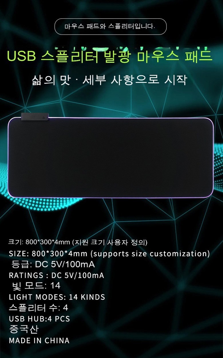 티아오 USB 도크 발광 마우스 패드 큰 컴퓨터 패드 800*300 (mm), HUB*4+RGB 발광