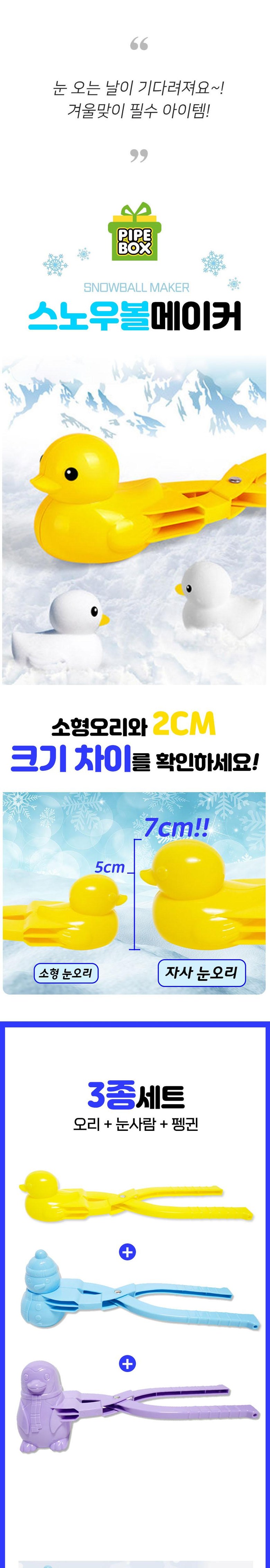 파이프박스 스노우볼 메이커 3종세트 1+1+1 대형 눈오리집게 눈집게 오리눈사람, 3종세트 (오리+눈사람+펭귄)