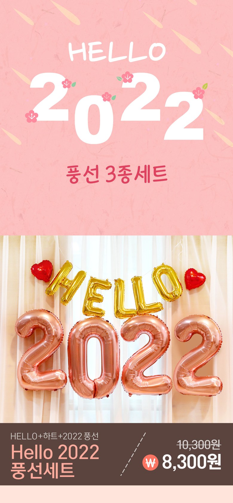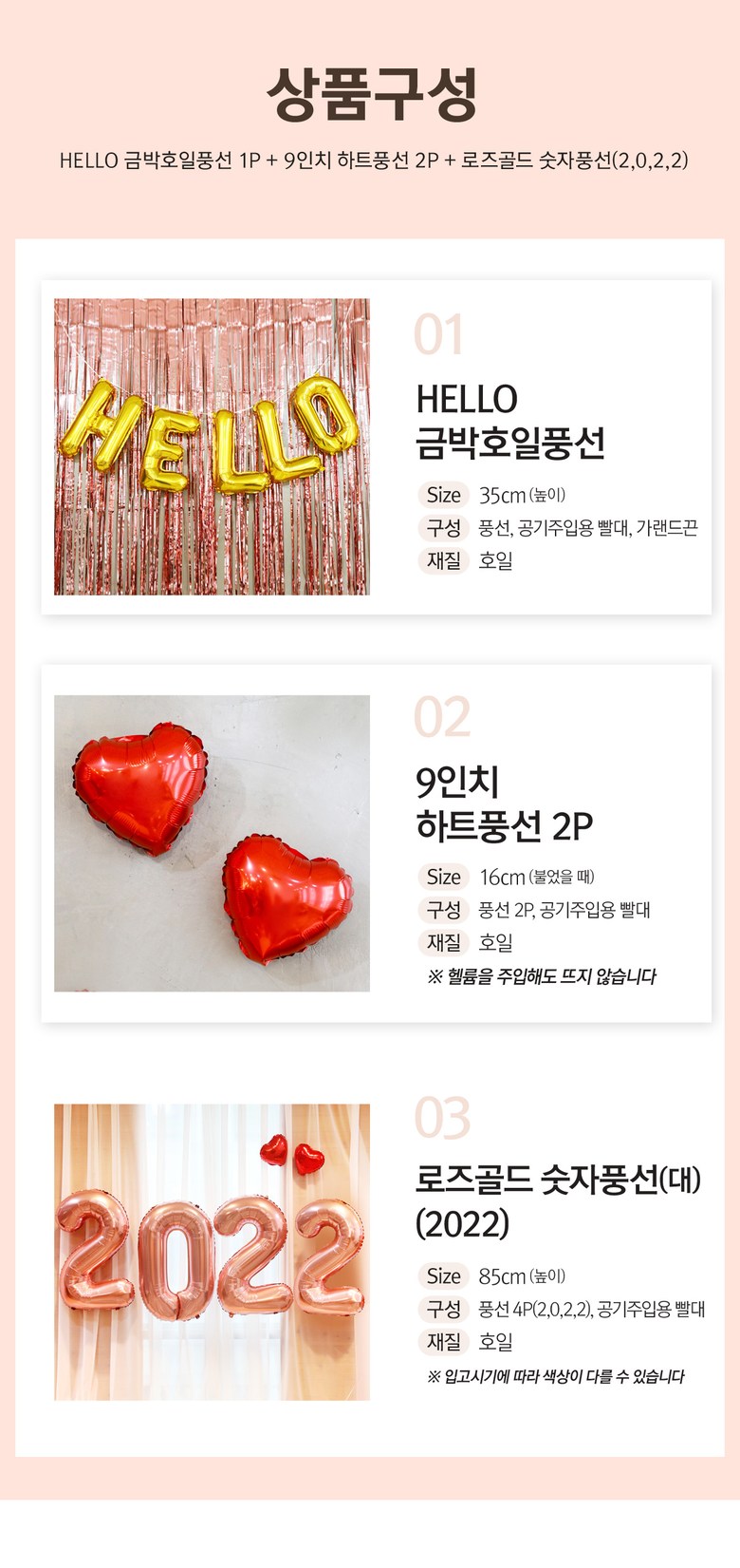 파티스토어 Hello 2022 3종세트 _ HELLO 파티풍선 로즈골드풍선 하트풍선 크리스마스홈파티