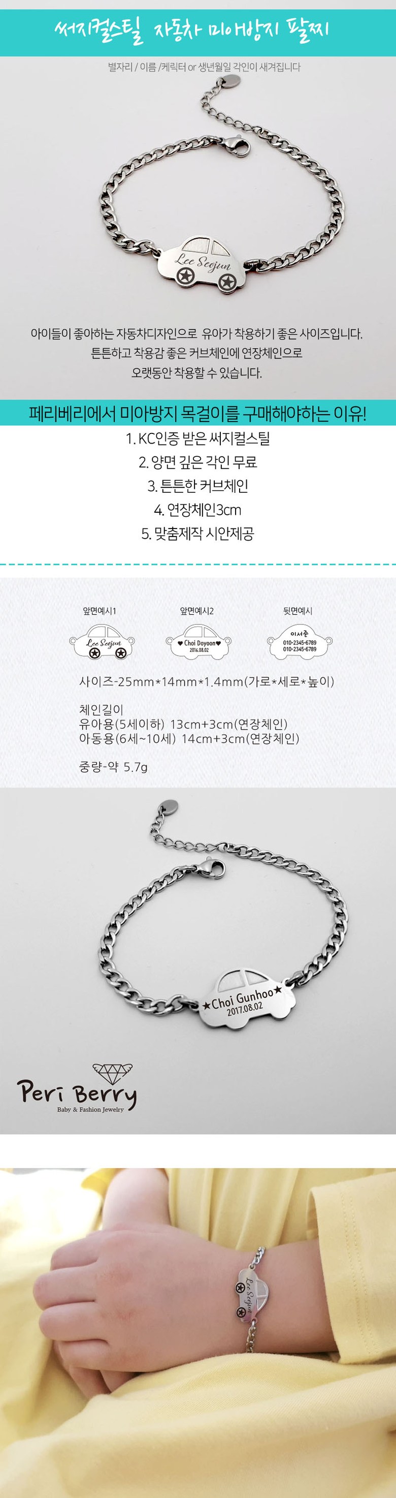 페리베리 [깊은각인]써지컬스틸 자동차 미아방지 팔찌