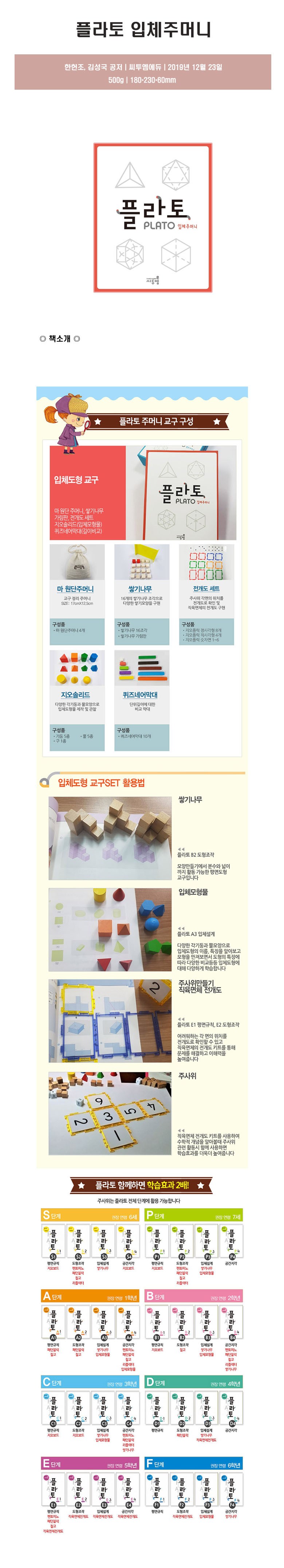 | 목차 또는 책소개(아동용 학습 교재의 경우 사용연령을 포함) | [씨투엠에듀] 플라토 입체주머니 |