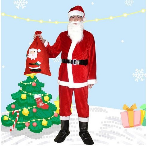 피플스파티 산타복 고급 남 7종 산타옷 꿈동산 상의 하의 벨트 모자 수염 장갑 자루, 산타옷(고급 남 7종)