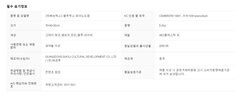 | 인증/허가 사항 | 상품 상세페이지 참조 |