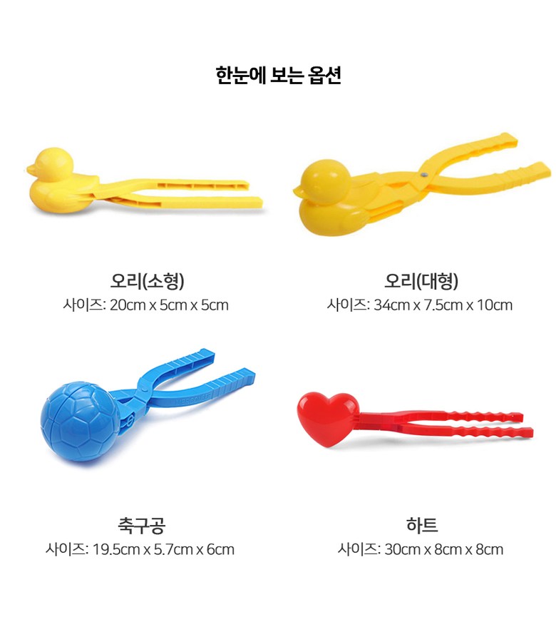 한스마켓 눈오리 스노우덕 눈집게 스노우볼 눈사람 메이커 눈싸움 모래 놀이 틀 뭉치기 제조기, 노란오리(대형)