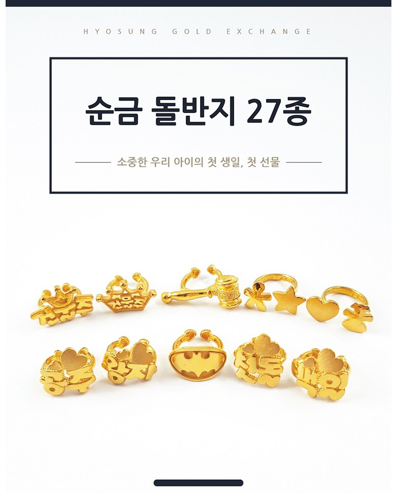 효성금거래소 [24K] 순금 하트백일 돌반지 1.875g 3.75g