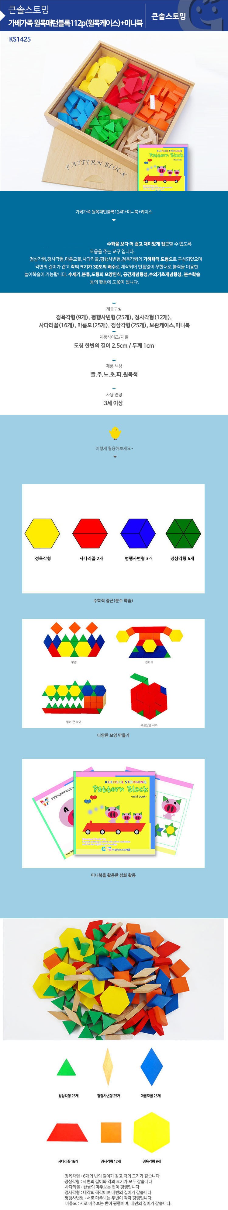 가베가족 원목 패턴블록 112p + 미니북 + 원목케이스, 빨, 주, 노, 초, 파, 원목색