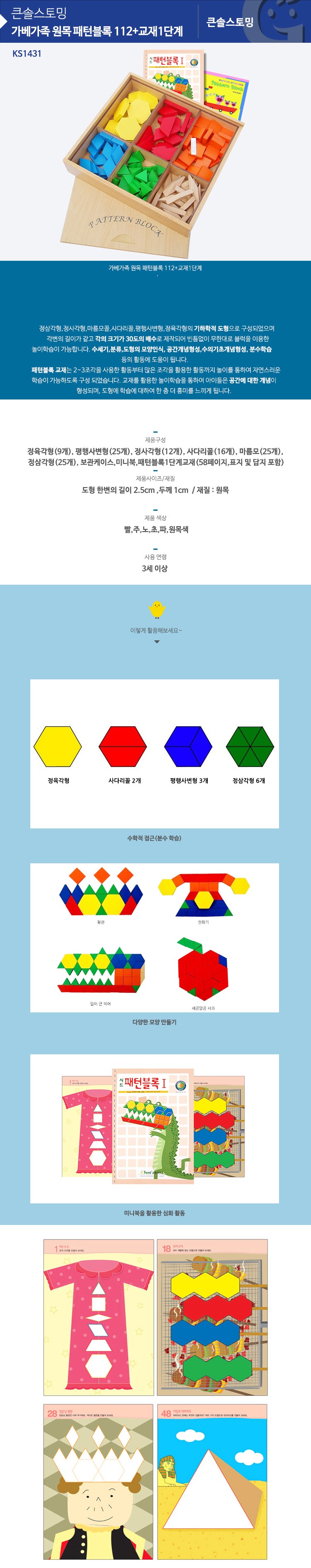 가베가족 원목 패턴블록 112p + 패턴블록 교재 1단계, 빨, 주, 노, 초, 파, 원목색