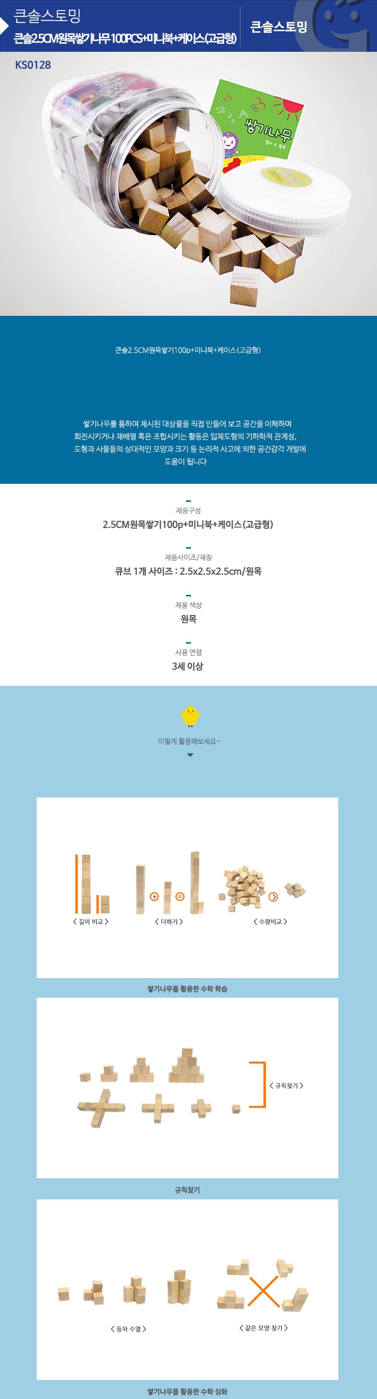 가베가족 2.5cm 비취 원목쌓기나무 100p + 미니북 + 보관통, 원목