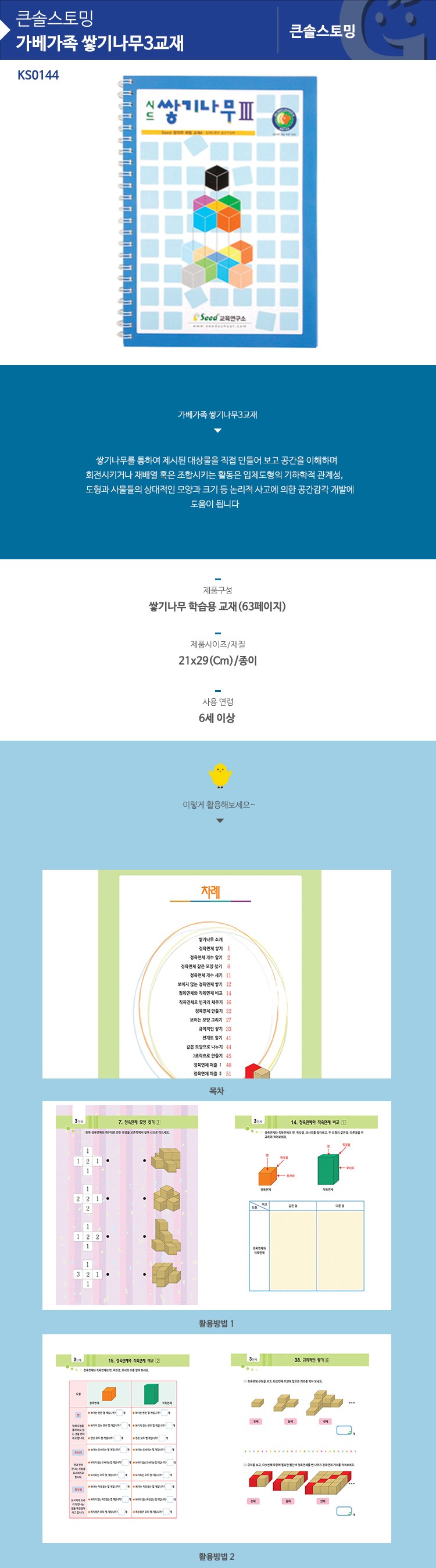 가베가족 KS0144 쌓기나무 3단계 교재, 혼합 색상