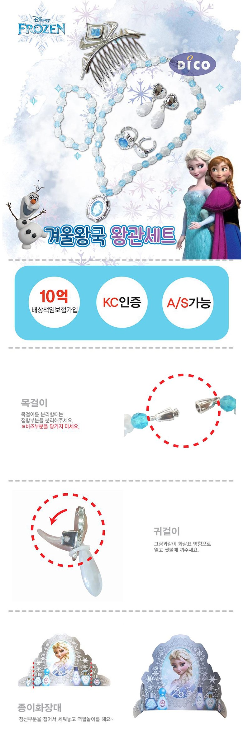 겨울왕국 겨울왕국2 왕관세트 귀걸이 목걸이 엘사 장난감 선물