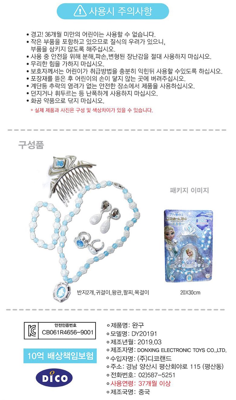 | KC 인증 필 유무 | 어린이제품안전특별법에 따른 KC인증 대상 |