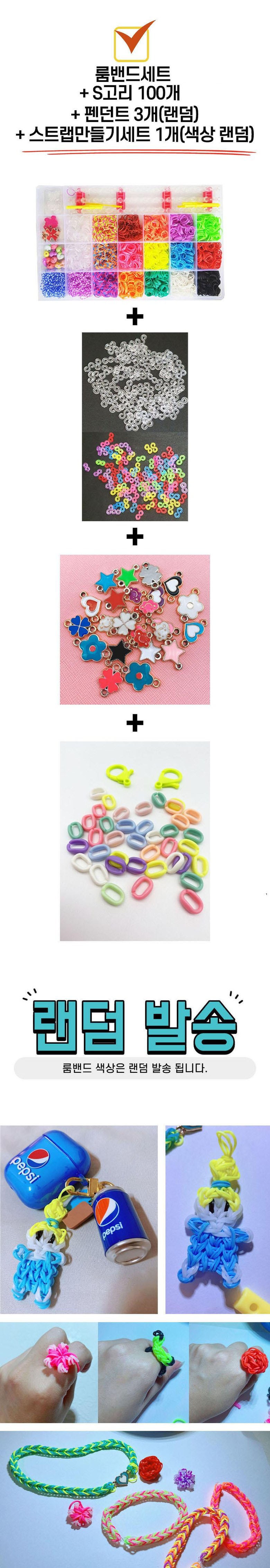 | 품명 및 모델명 | 고무줄 팔찌 만들기 룸밴드 + S고리 100p + 펜던트 3p + 스트랩 만들기 고무줄 공예 세트 |