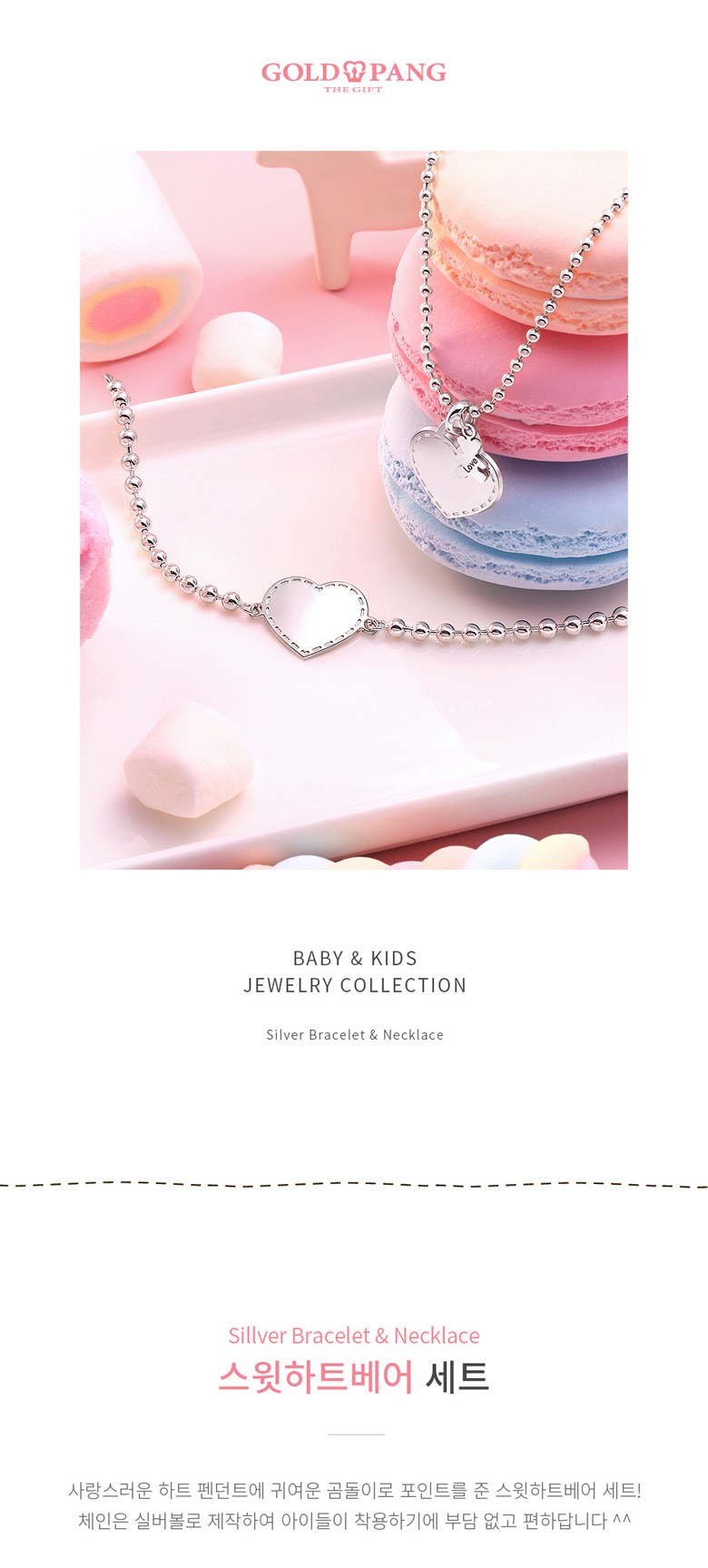 골드팡 실버 스윗하트베어 미아방지 목걸이 팔찌 세트
