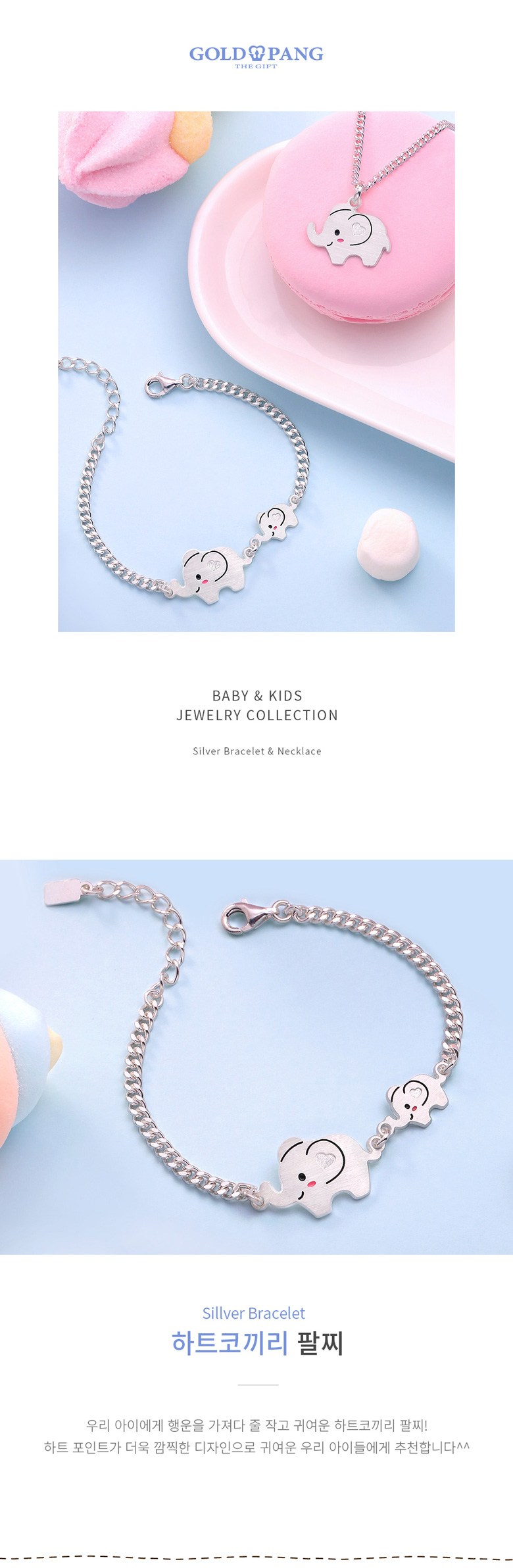골드팡 실버 하트코끼리 미아방지 팔찌