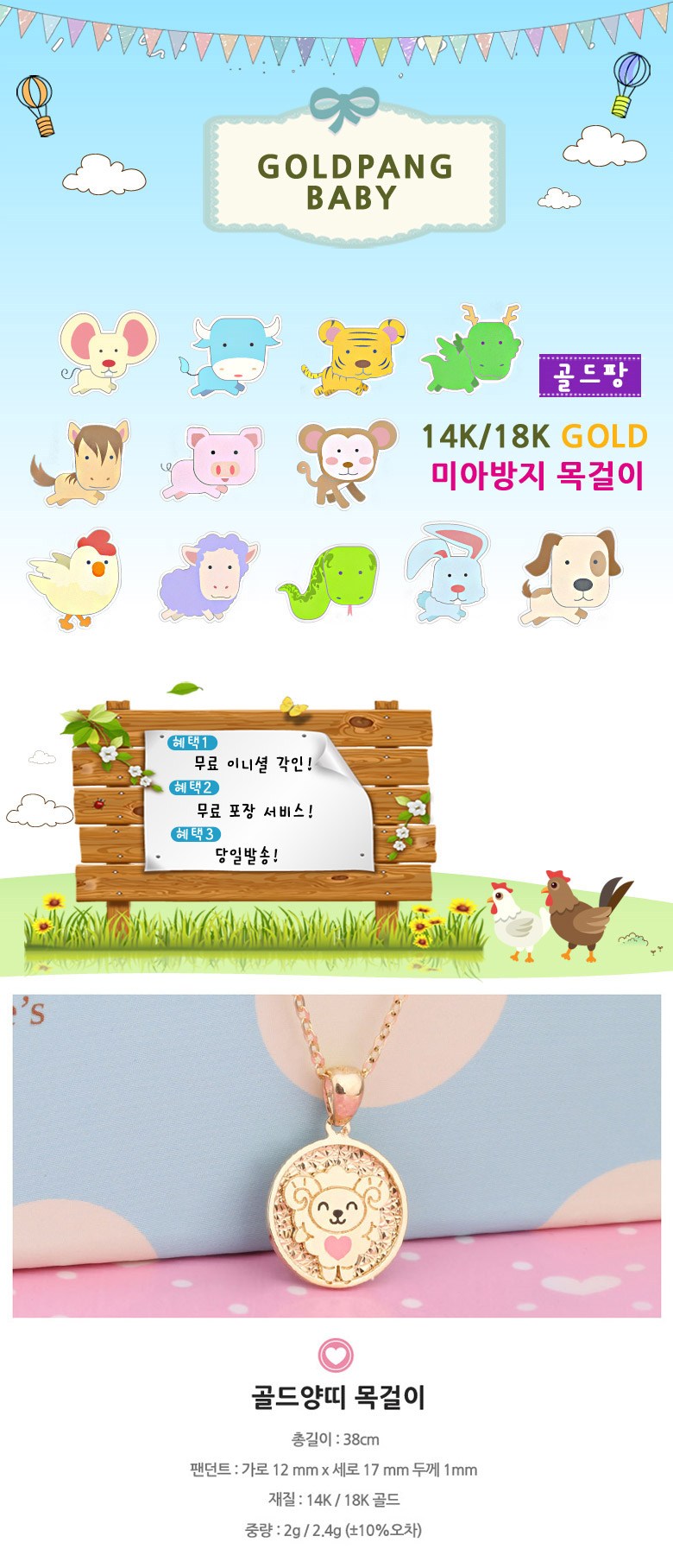 골드팡 14k 18k 양띠 미아방지 세트