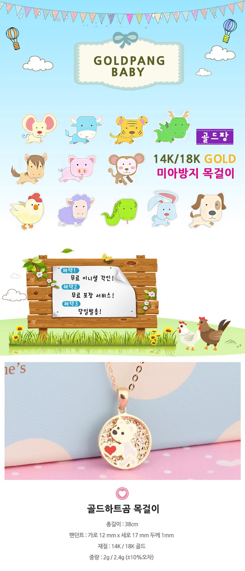 골드팡 14k 18k 하트곰 미아방지 세트