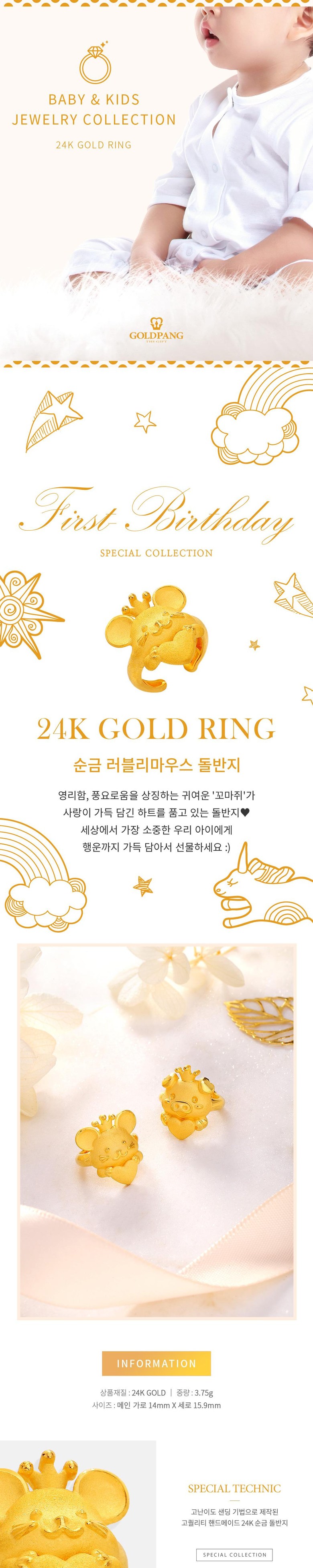 [골드팡] 24k 순금 러블리마우스 돌반지