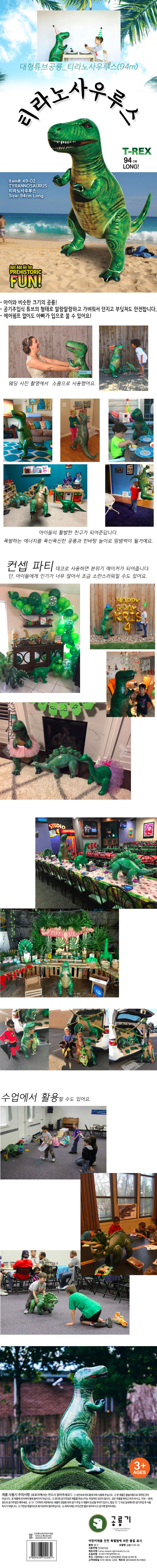 공룡기 티라노사우루스 튜브 공룡 풍선 대형 94cm, 그린, 1개